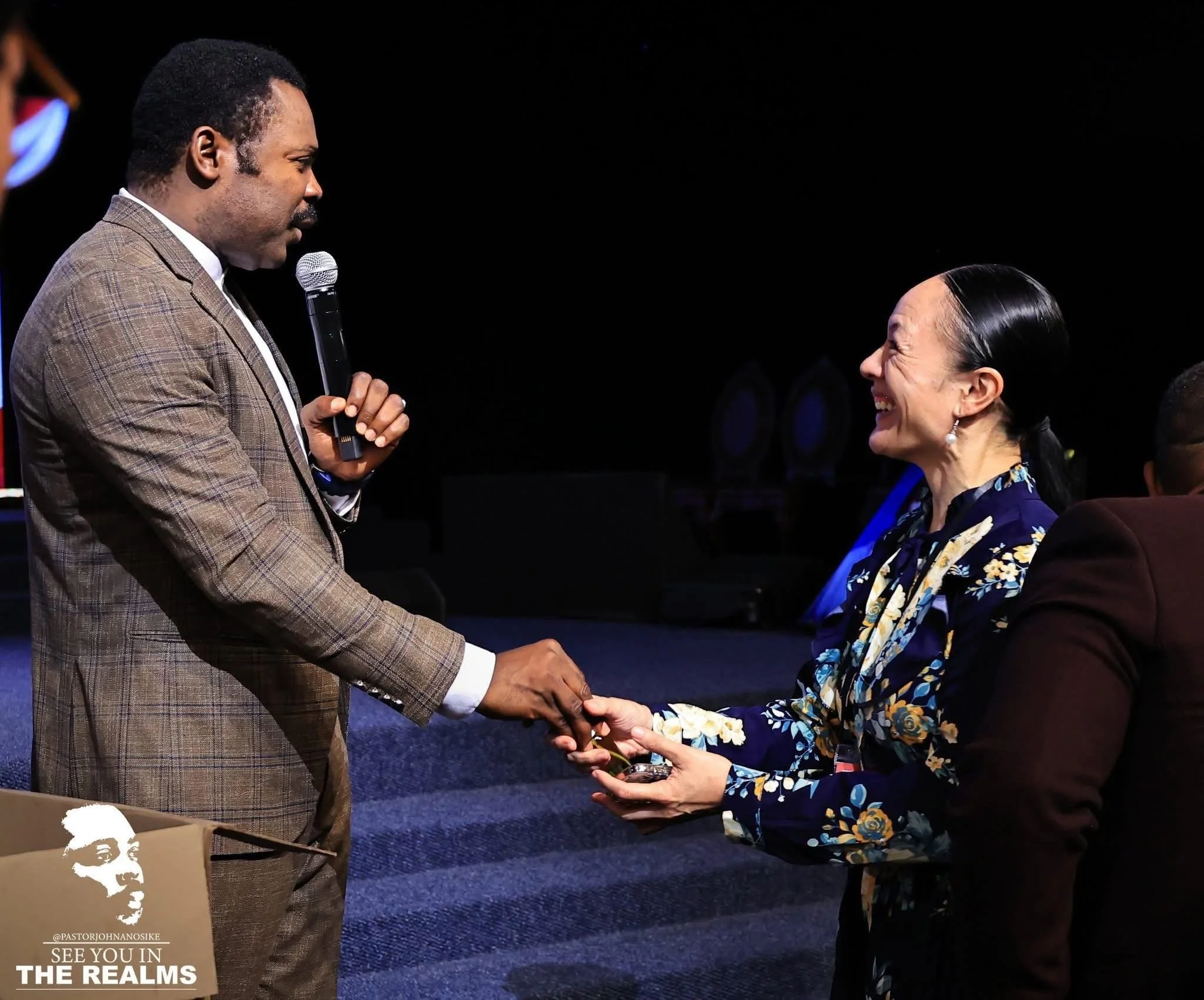 Apostle Katarena is accountable under the spiritual leadership and covering of the General of Generals, her spiritual father, Pastor John Anosike of Spirit Revelation Ecclesia.